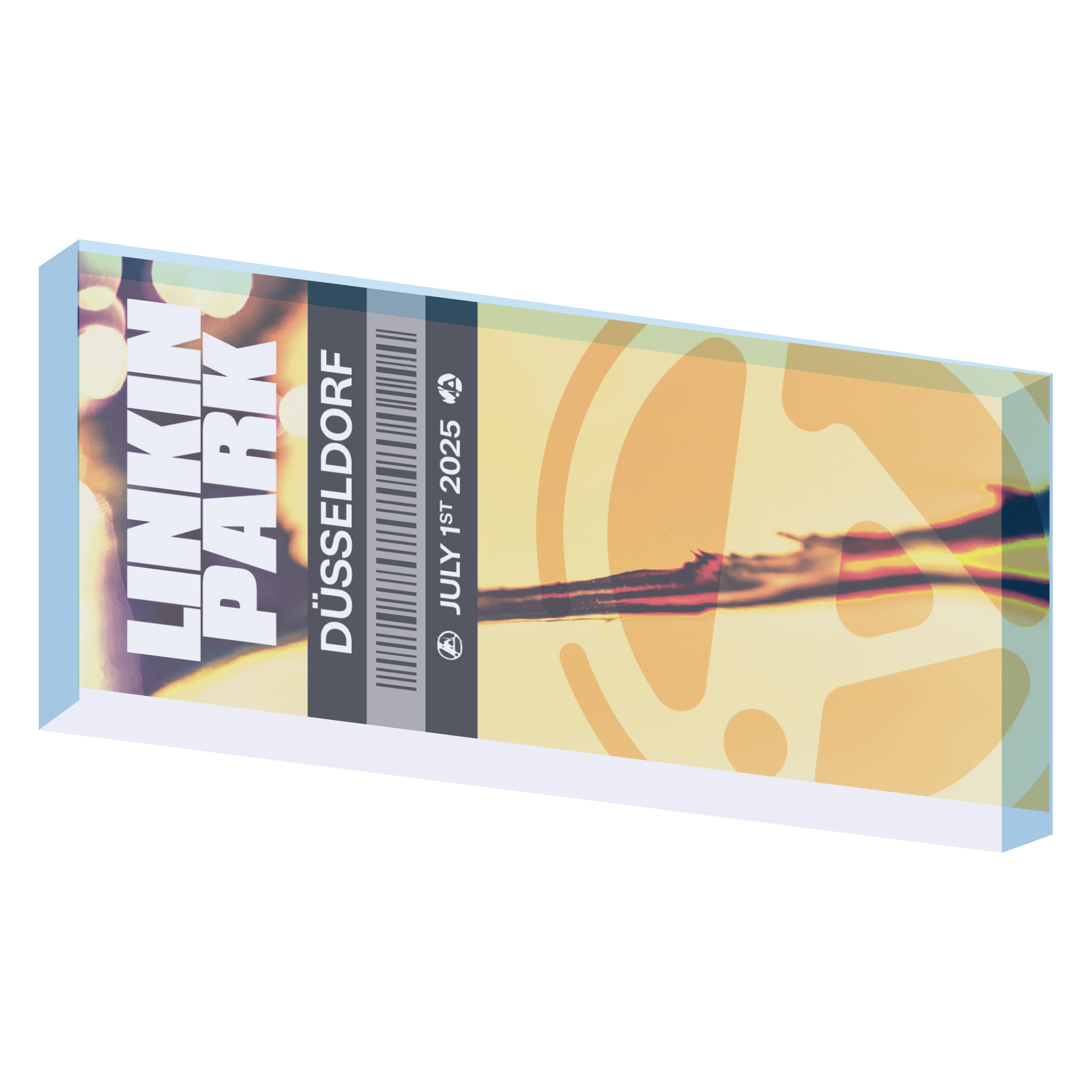 Commemorative acrylic magnet featuring a ticket from the Dusseldorf 2025 show. 5"x2"