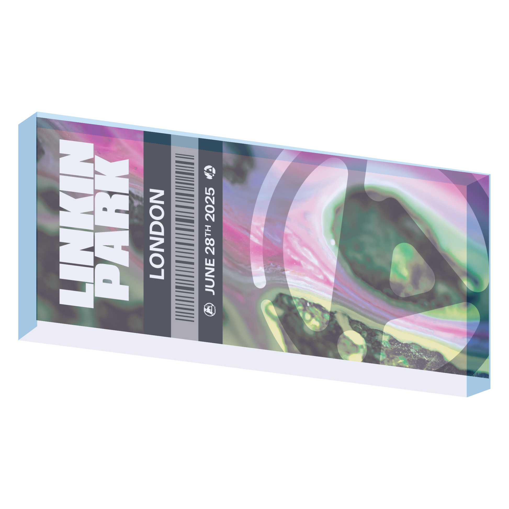 Commemorative acrylic magnet featuring a ticket from the London 2025 show. 5"x2"